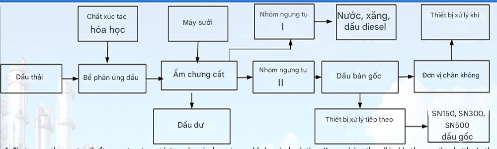 Trước khi chưng cất, một chất xúc tác (hóa chất kiềm) được bổ sung để trung hòa độ axit trong dầu thải.